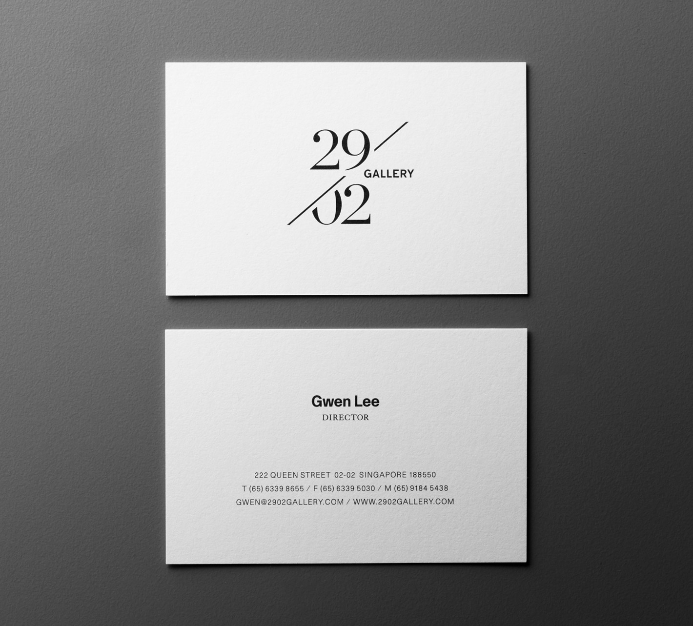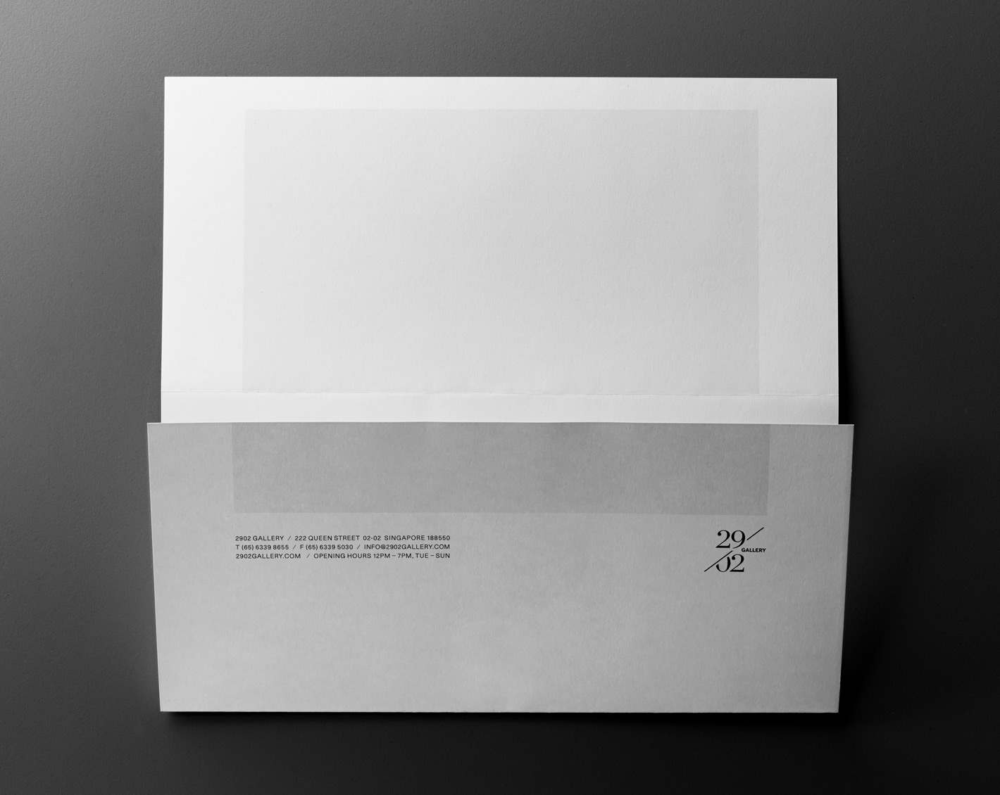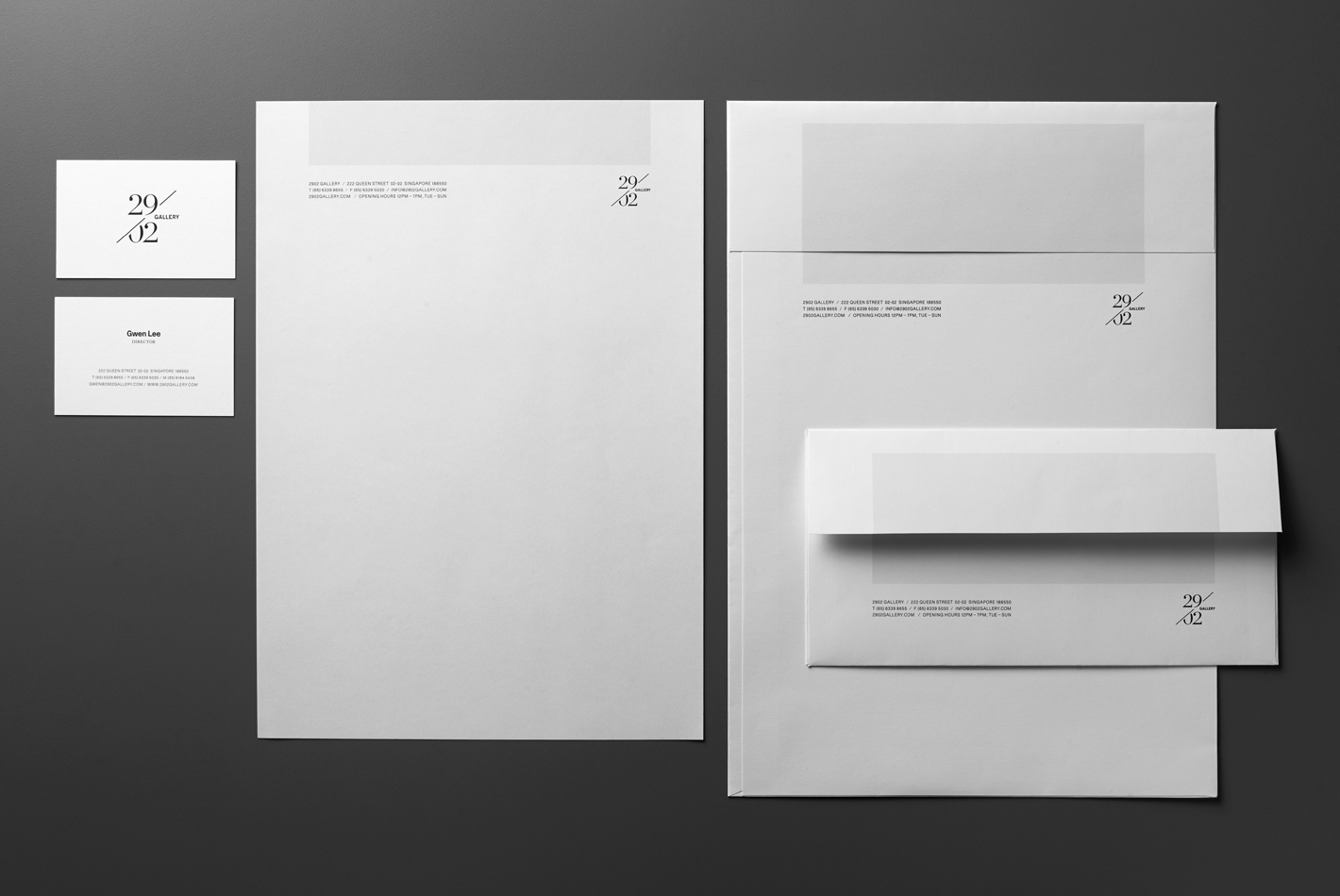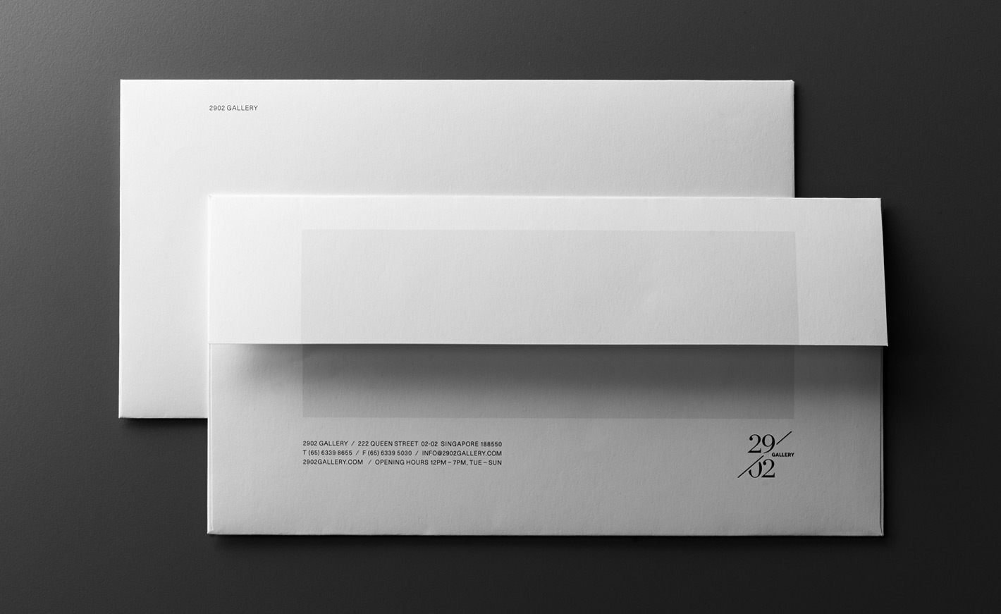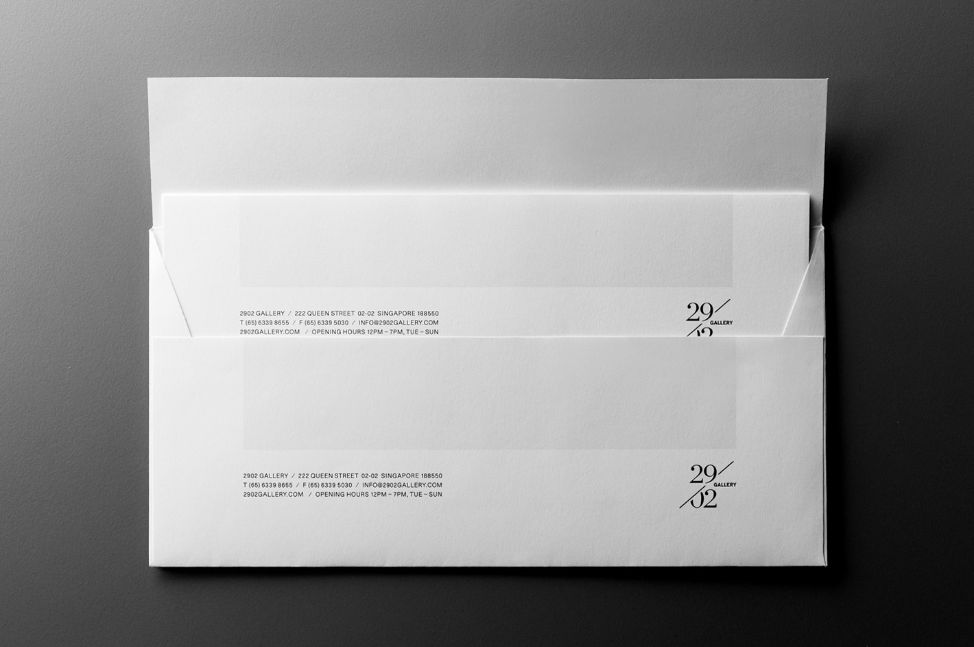 The name encapsulates both the rarity of the gallery’s opening day (29/02/08) and the exclusive nature of the artworks and artists it represents. From this, we designed the gallery’s brandmark based on the slash (/) – a symbol commonly used to reference limited edition prints as well as calendar dates.