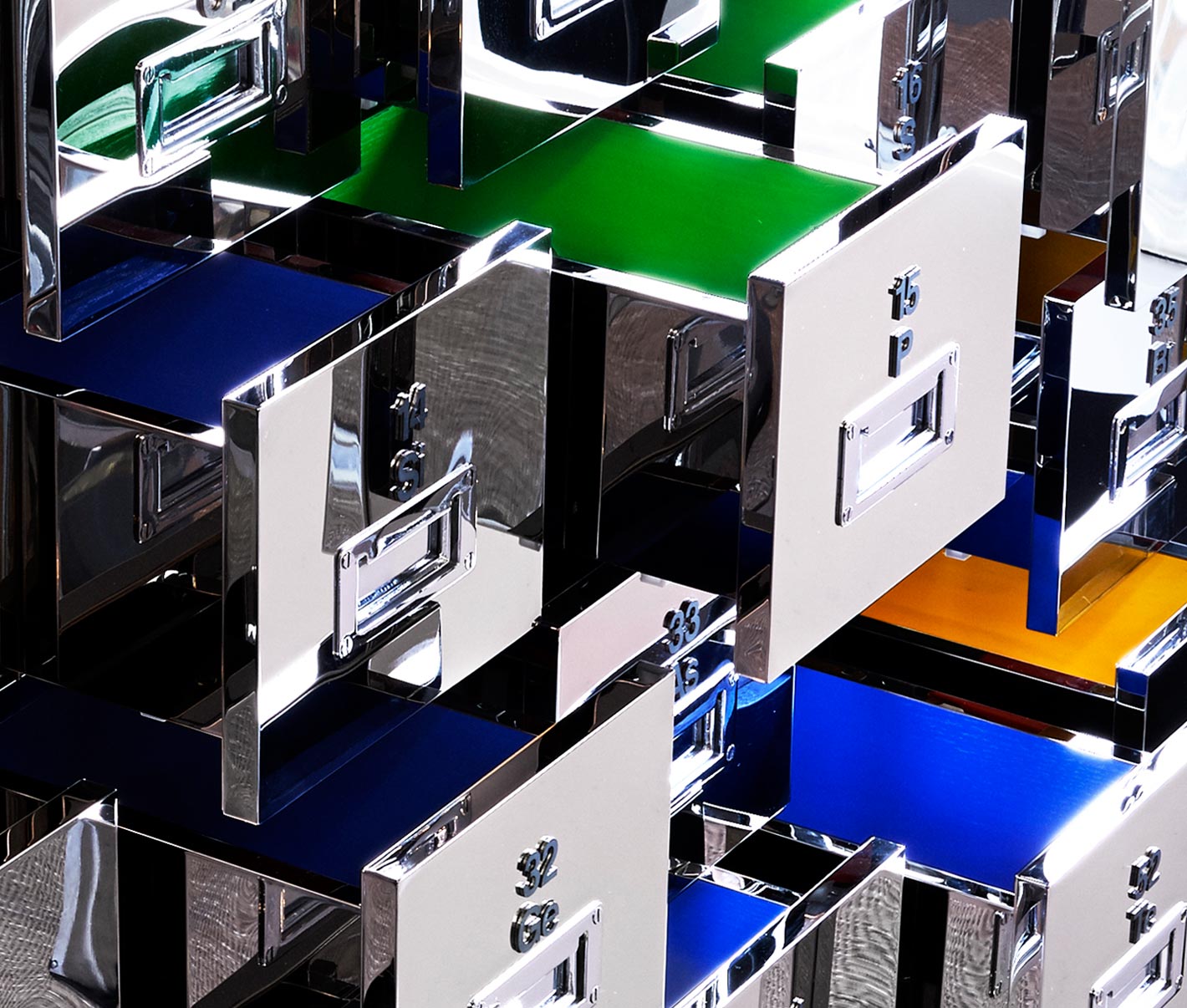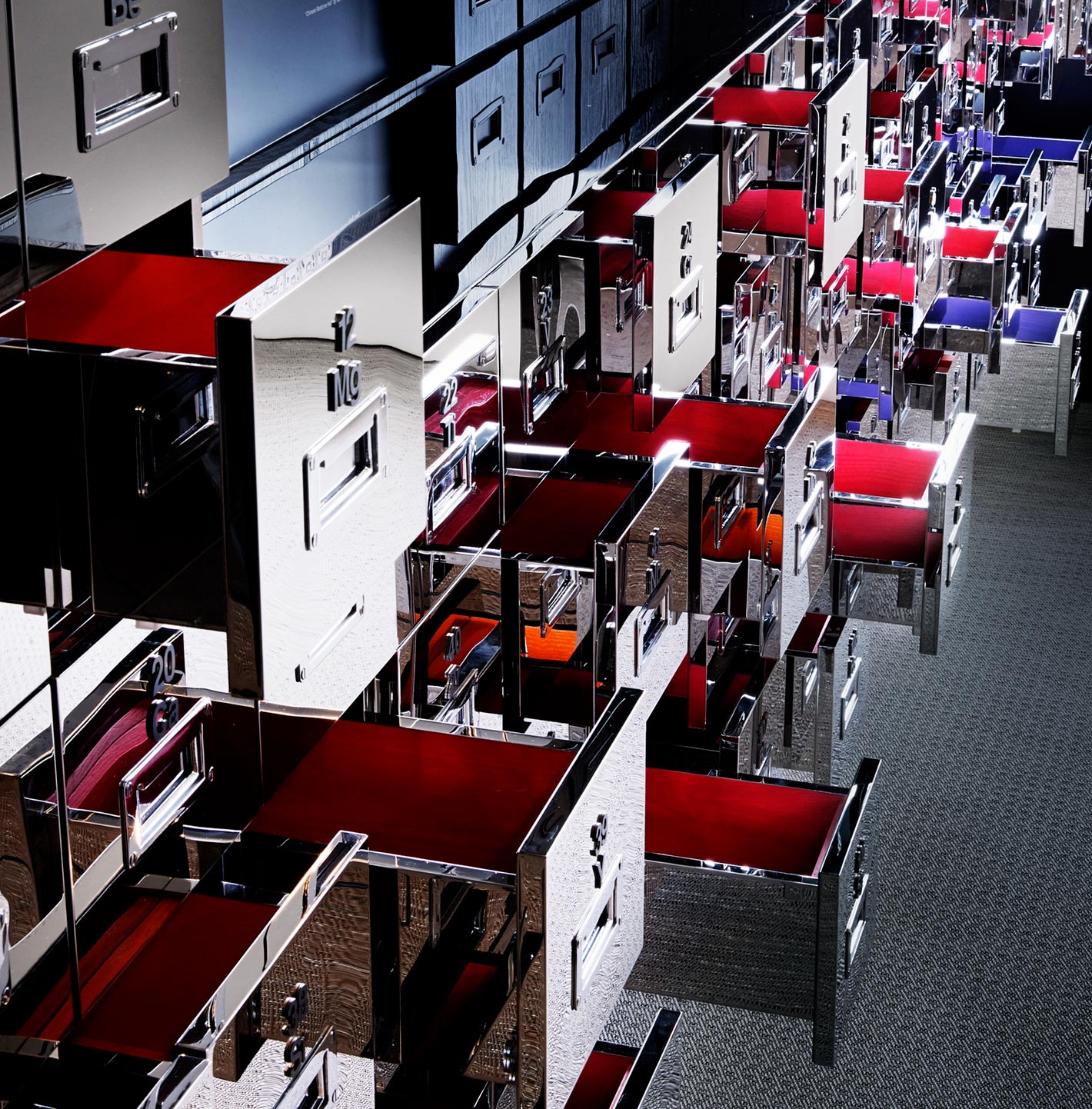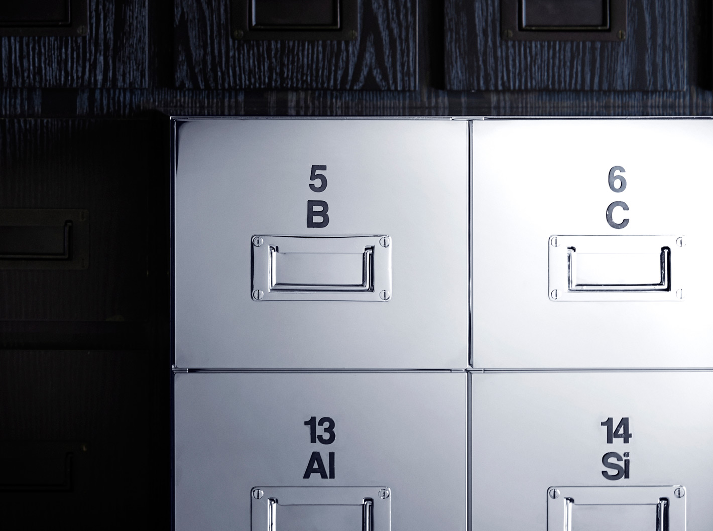 On a deeper level, a series of flash cards housed within corresponding drawers highlight how advancements in science and technologies have profoundly enhanced liveability. Each card highlights a chemical element and communicates a carefully considered association to a successful partnership or case study belonging to an EDB partner company.