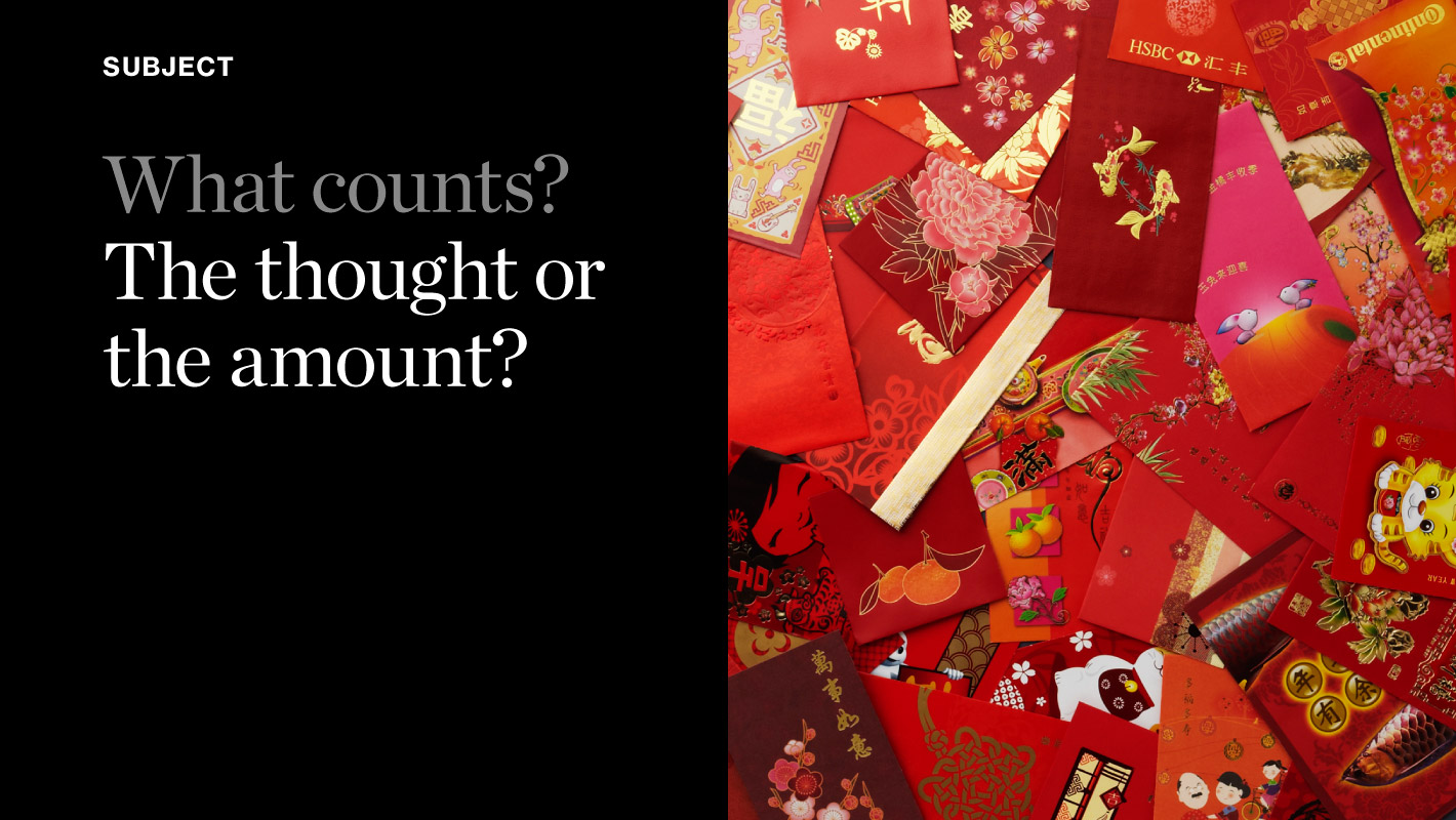 In Singapore, as red packets are given out during Chinese New Year, weddings and birthdays, the design had to be flexible. In a twist to the overused original saying, we printed the words “It’s the thought that you’ll count” on the front of the packet. This, in our opinion, is a more accurate reflection of reality as people do count the amount given and associate it with the giver’s generosity. This is also why we have named our red packets “Face Value” – a pun on the Asian culture of “saving face”.