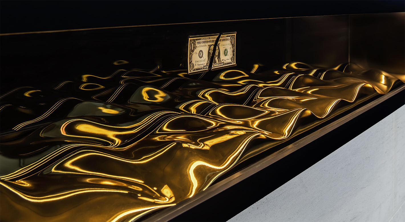 GET IN TOUCHGIC was the brainchild of former Deputy Prime Minister Dr Goh Keng Swee. This showcase shows how the upheaval in global currency markets called for radical action. Seeking to protect our reserves, Dr Goh circumvented an embargo to buy gold. The actual torn US dollar bill that was used to authenticate the clandestine deal is held aloft golden waves, testament to a legacy of foresight, dedication, ingenuity and enterprise.