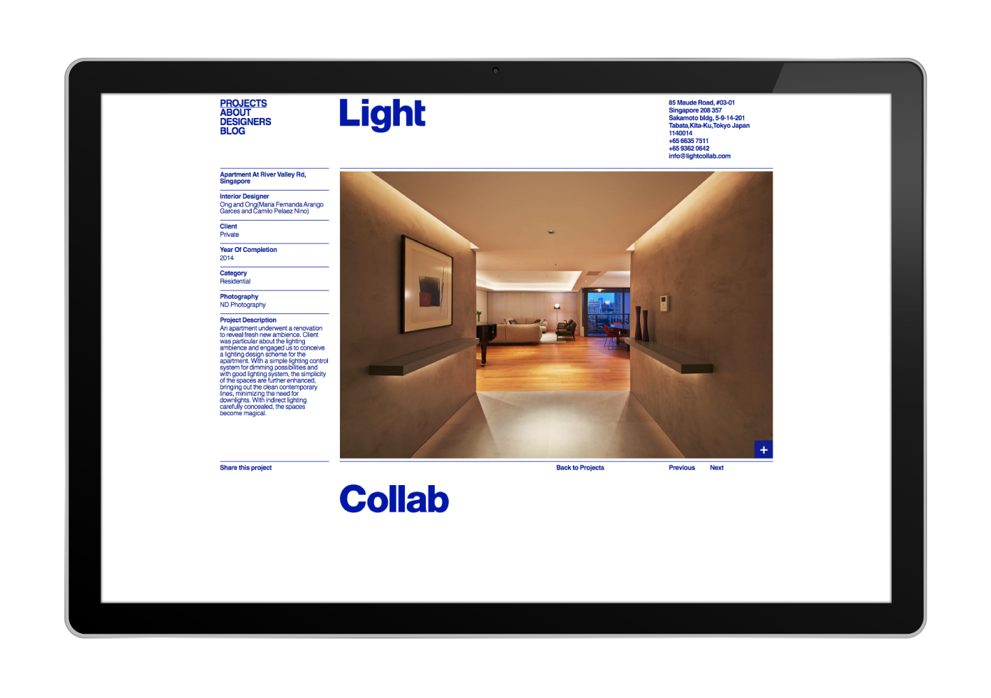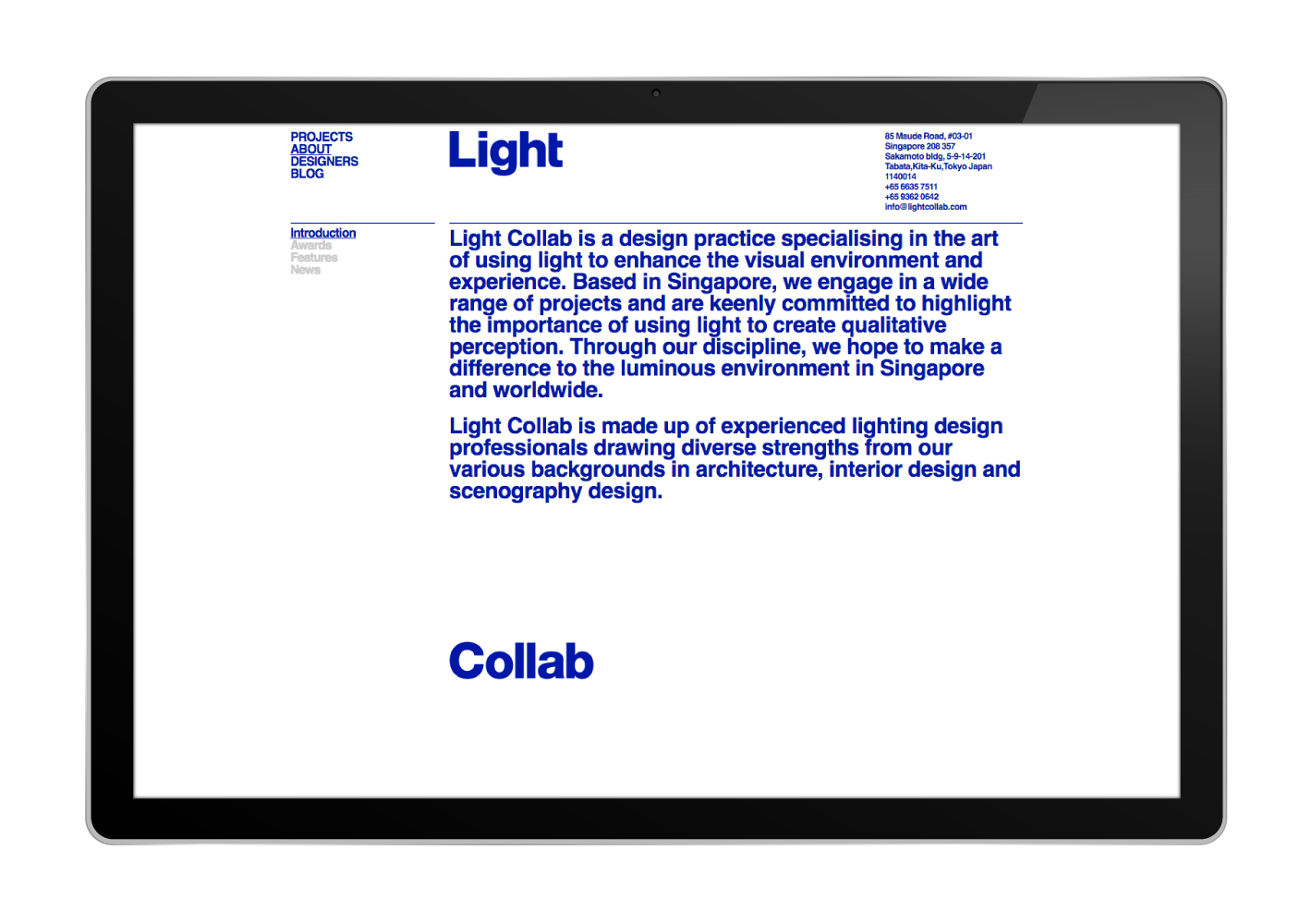 GET IN TOUCHLight Collab is a lighting design studio that welcomes collaborations from the creative field. The intentional displacement of words in the brandmark expresses this concept visually as an open canvas, inviting and allowing collaborative efforts to occur.