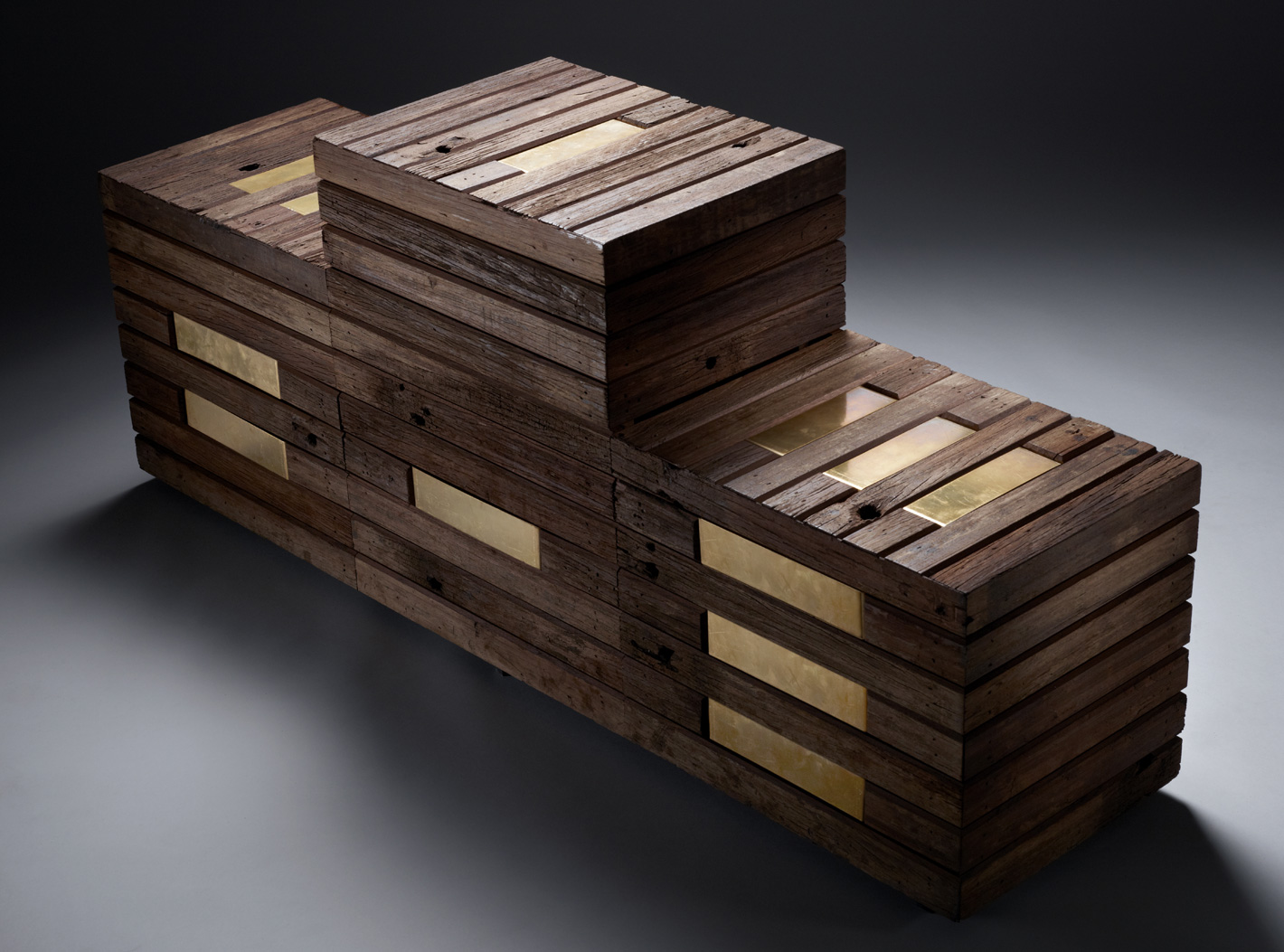 Viewed from the front and back, the deliberate omission of horizontal planks reveal the Chinese characters “一”, “二” and “三”, representing the first, second and third placed competitor’s place on the podium. Likewise when viewed from the top, the Roman numerals “I”, “II” and “III” are displayed. With its three levels, the bench invites adults and children to rest, play and exercise on. While it is inherently human to strive for first place, Benchmark Sat allows its user to choose a preferred seat, comfortably setting his or her own benchmark.