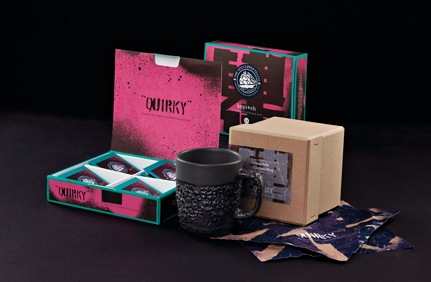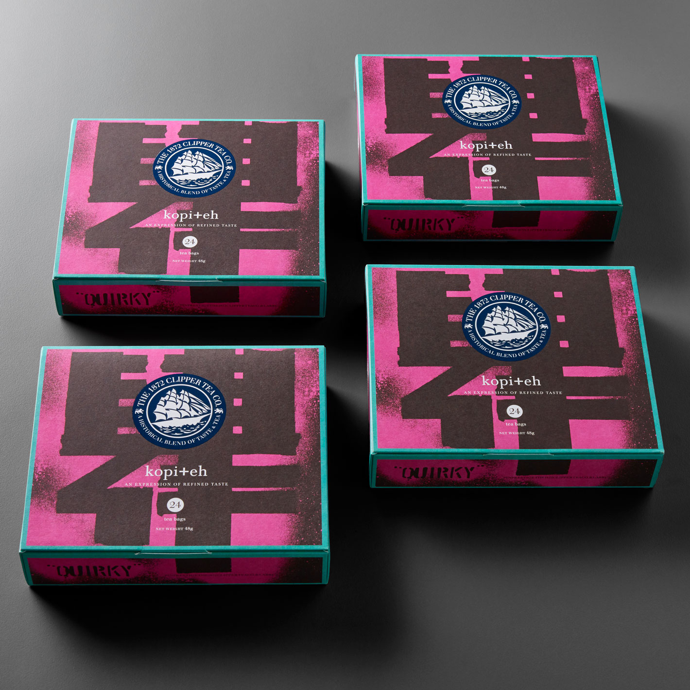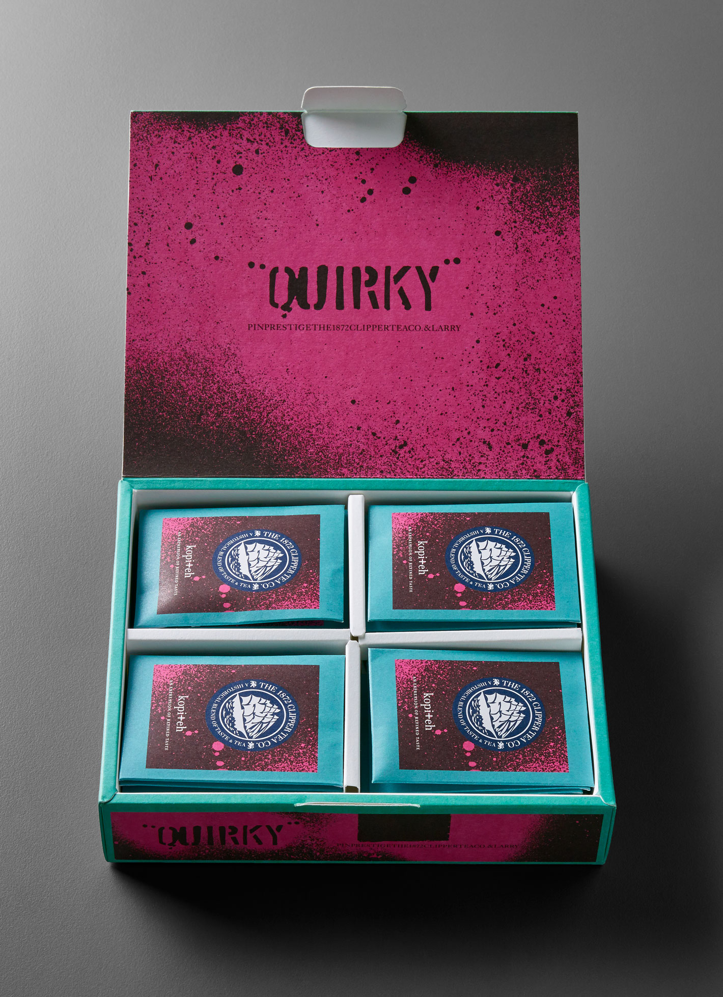 What could be more audacious than to ask a renowned tea company to make a tea blend with coffee in it? Inspired by local beverage ‘Yuan Yang’, &Larry worked with The 1872 Clipper Tea Co. to create ‘Kopi +eh’, a smooth combination of fragrant black tea and robust coffee that lingers on the tongue and in the memory.