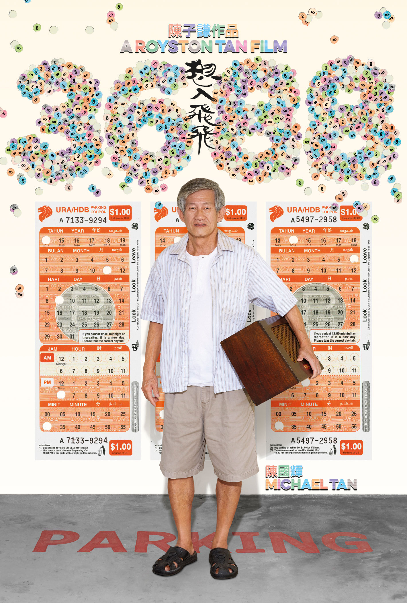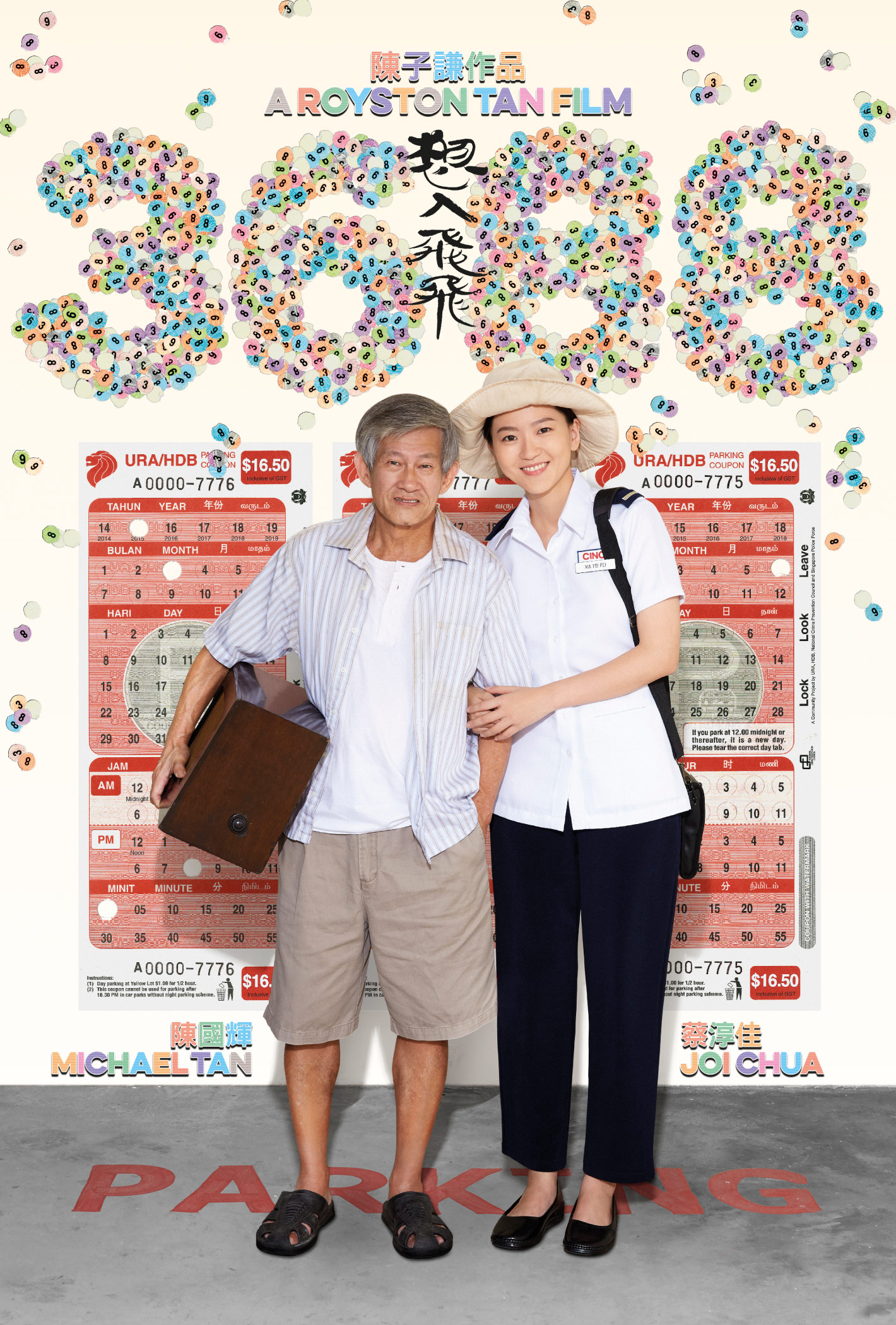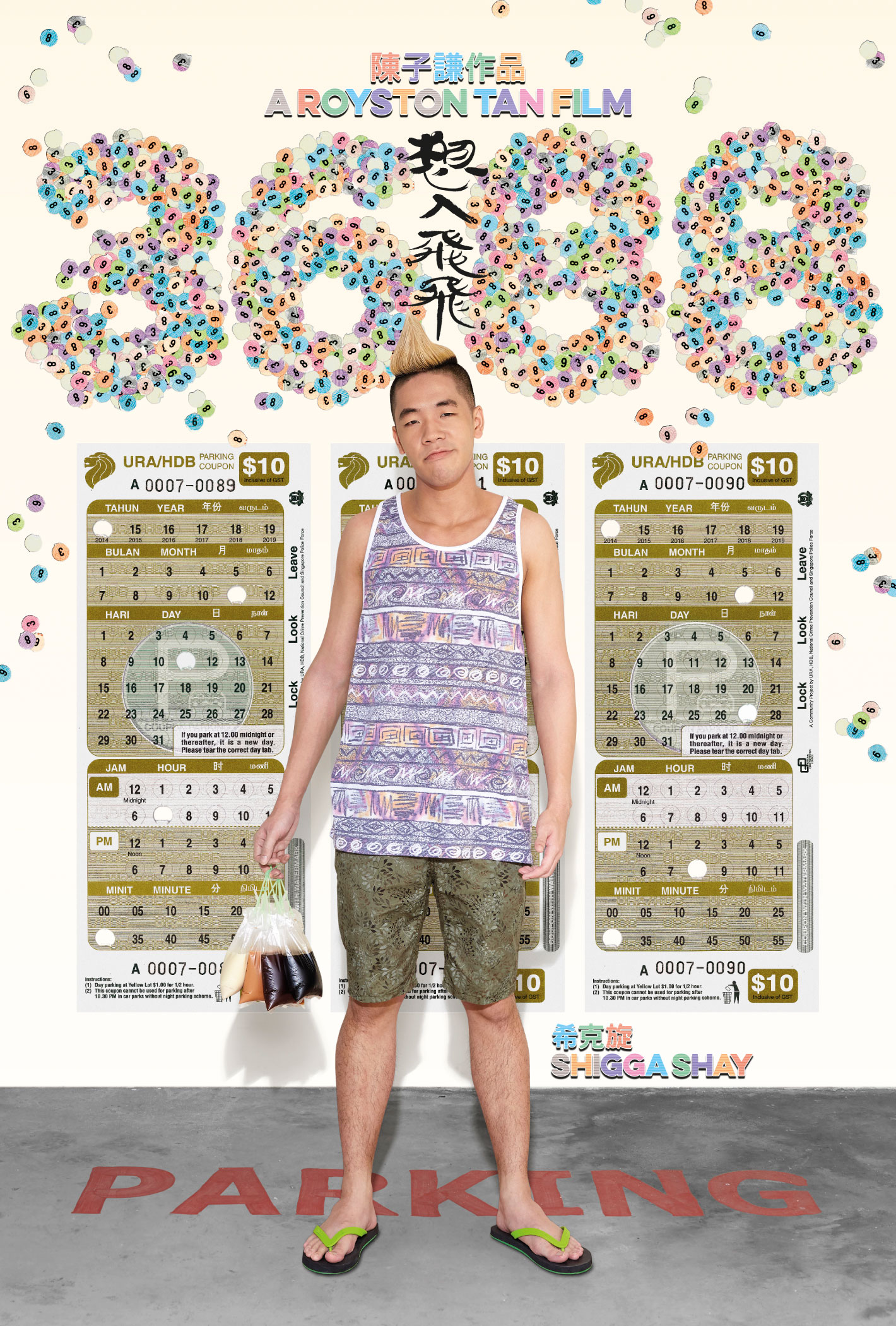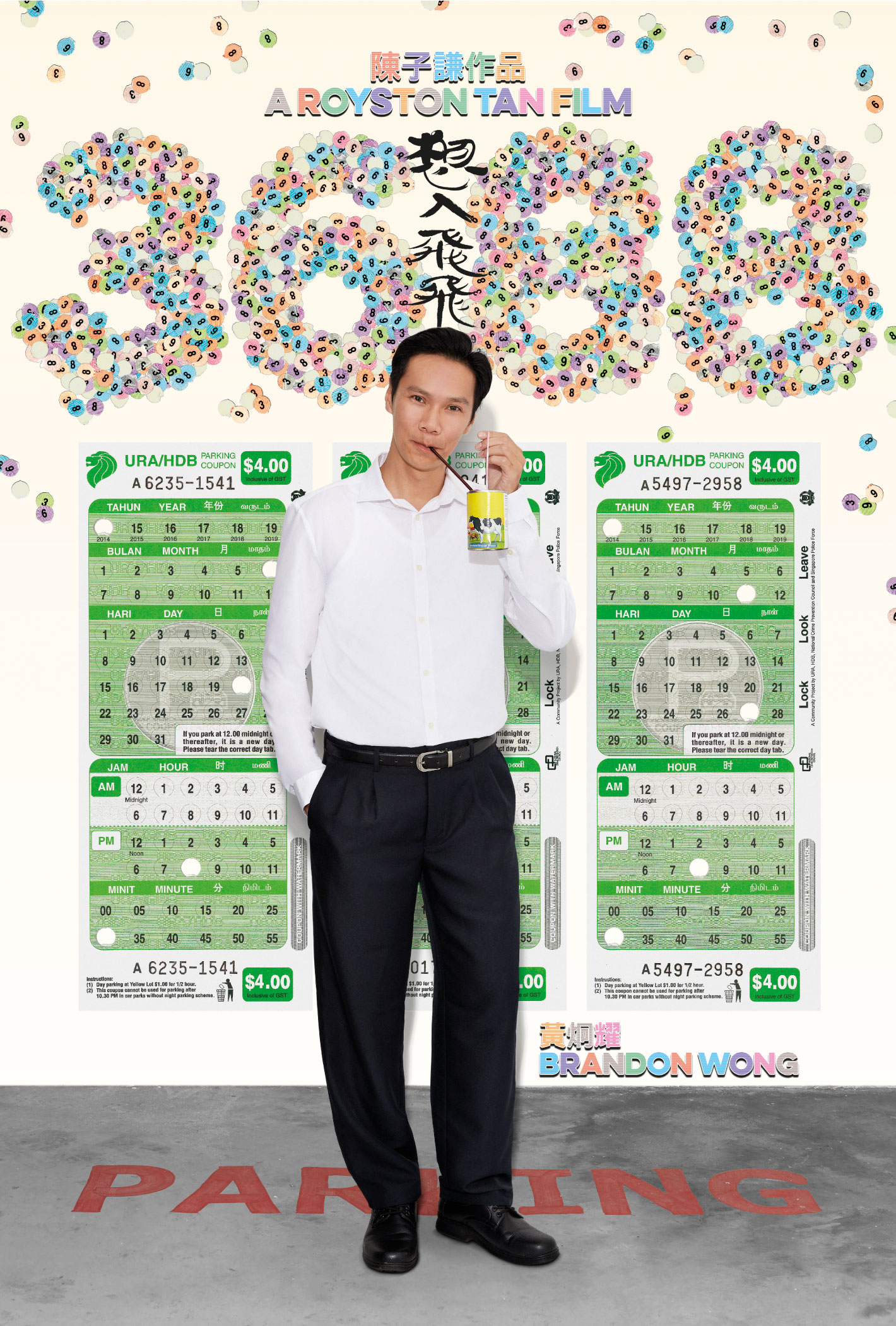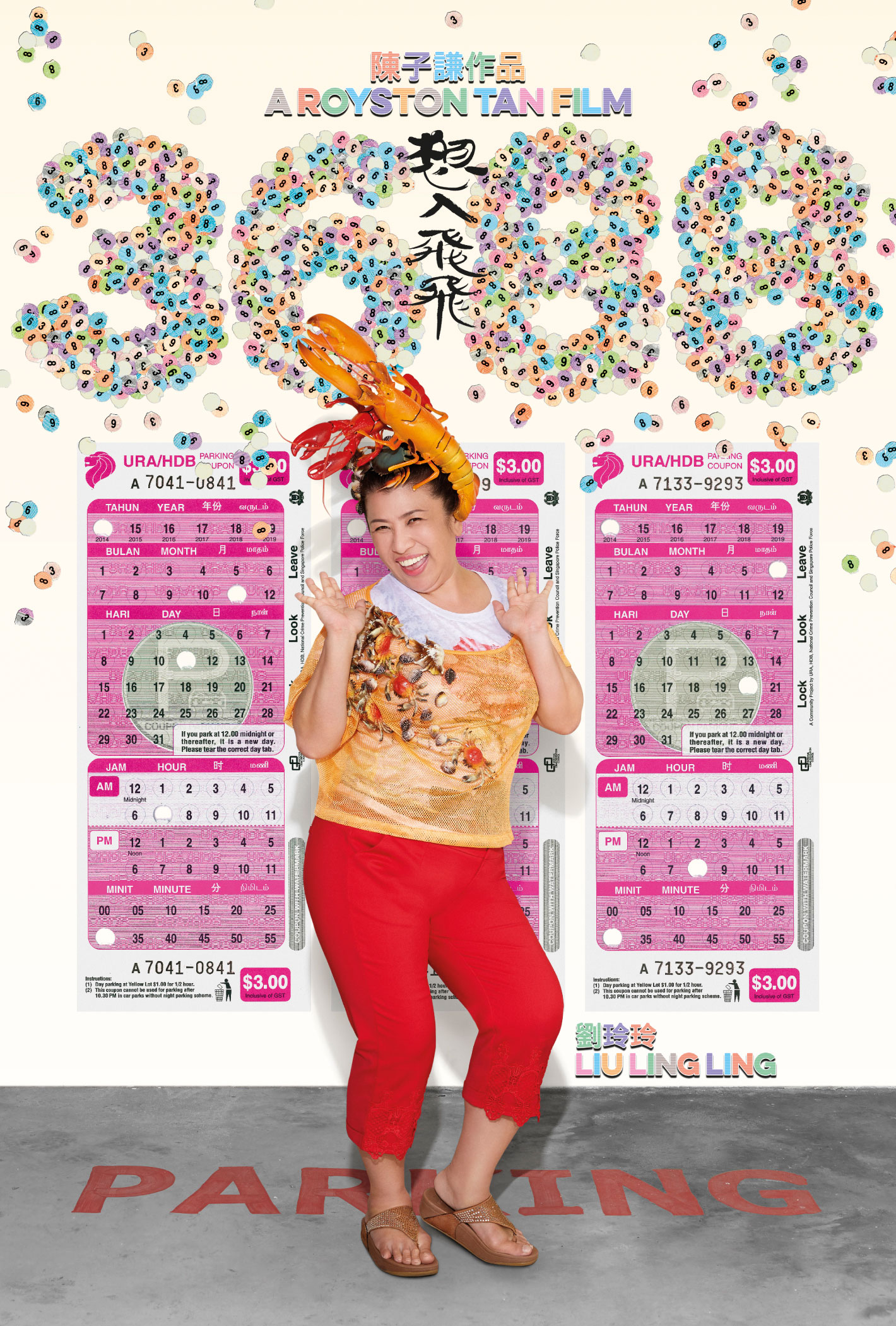 Suitably expressive of the movie’s troupe of colourful characters, the visual language employed is a deliberate pastiche of the familiar parking coupons in Singapore and the oft littered punch-out tabs.