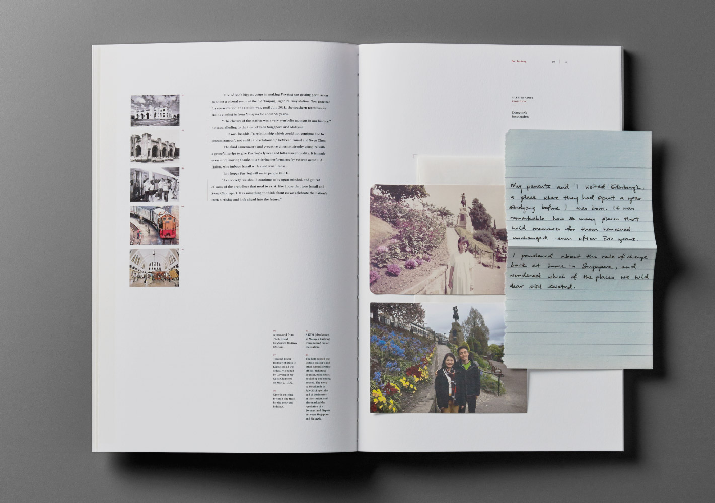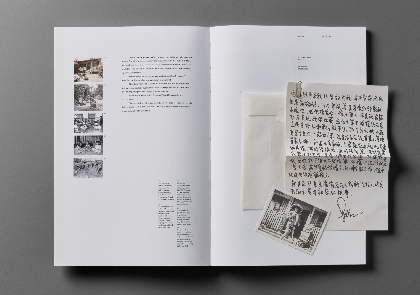Through careful and faithful reproductions of inspirational objects submitted by the directors – old photographs, personal artefacts, handwritten notes – the directors’ innermost thoughts were meaningfully conveyed to the audience. Enclosed within translucent envelopes appended after each essay, these keepsakes serve to supplement the anthology, allowing the viewers a deeper understanding of the impetus behind the creation of each short film.