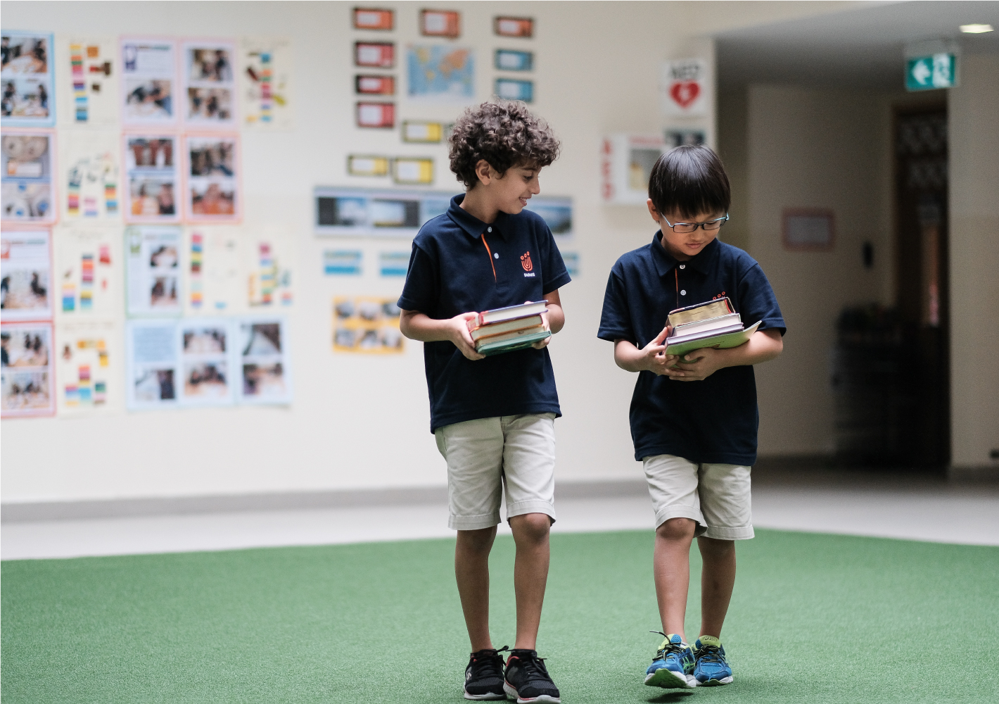 As part of the spatial branding for SMMIS, we redesigned the facing wall in the main atrium to feature ‘books of wisdom’ titled after the schools’ core values of Love, Lifelong Learning, Kindness, Community, Honesty, Peace, Reflection, Collaboration, Justice, Creativity, Respect and Enquiry.
