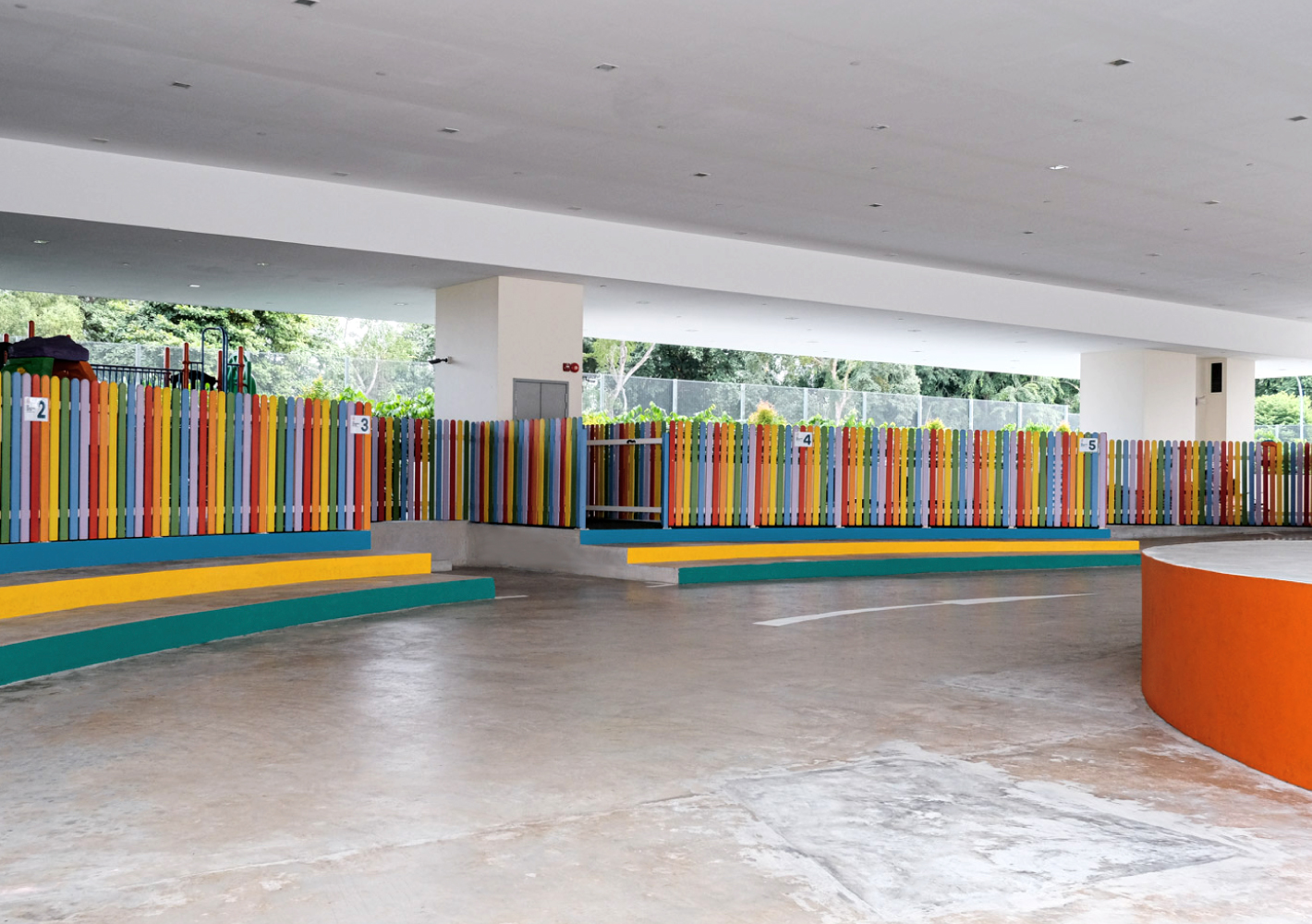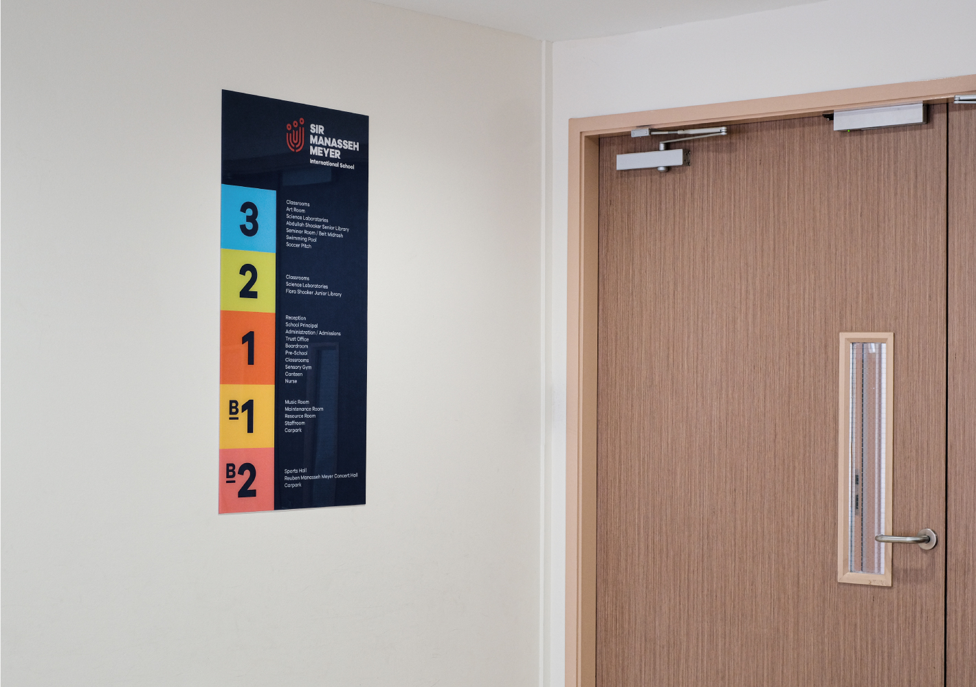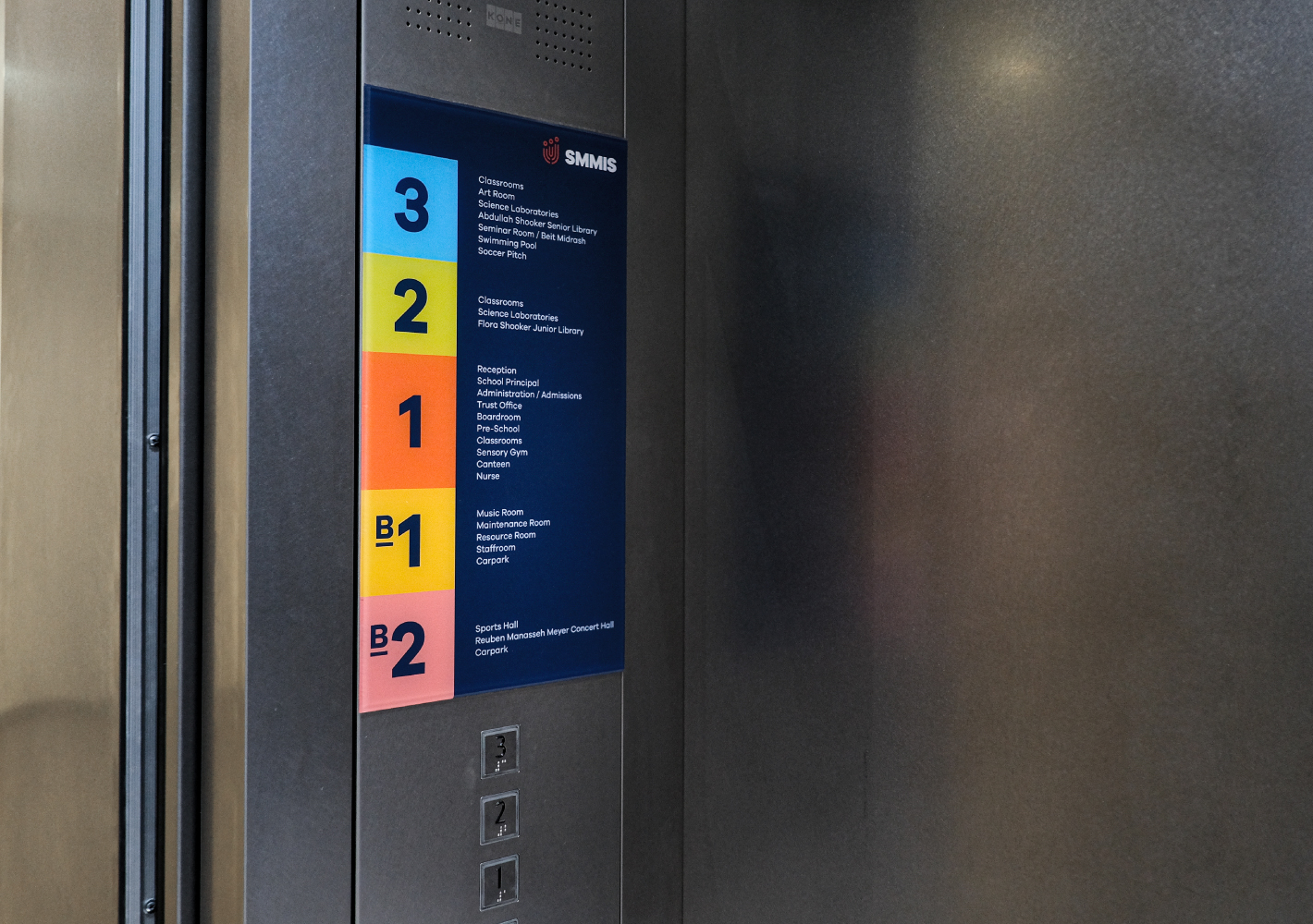 We also advised on the use of colours throughout the school to create a more joyful environment. From the driveway to corridors and the design of wayfinding signs and lift directories, colours perform both functional and emotional roles in the overall identity of the school.