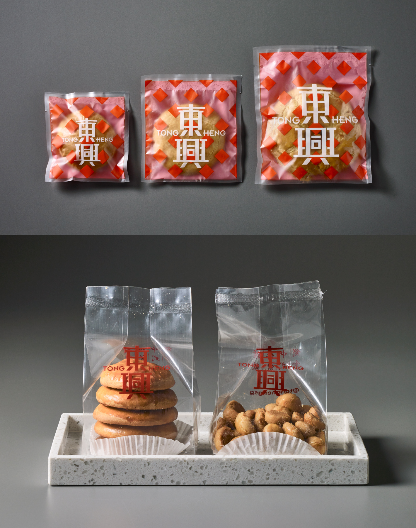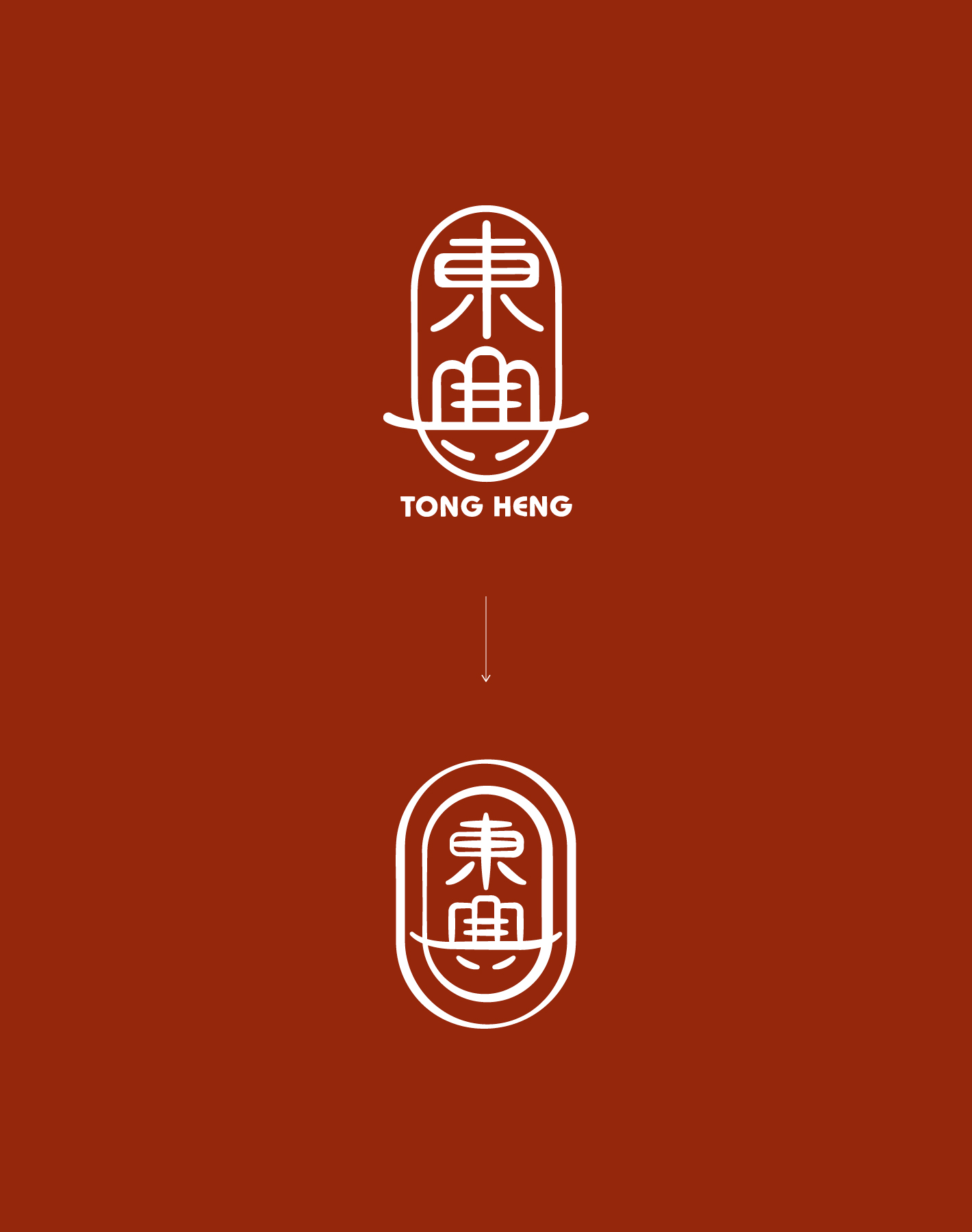 The new brandmark and identity system pay respect to the original design while being thoroughly optimised for modern day requirements. The brand essence for Tong Heng, summed up as "Joy in a Bite", is incorporated into the Chinese character for 'joy' (興) as the radicals for 'a bite' (一口).