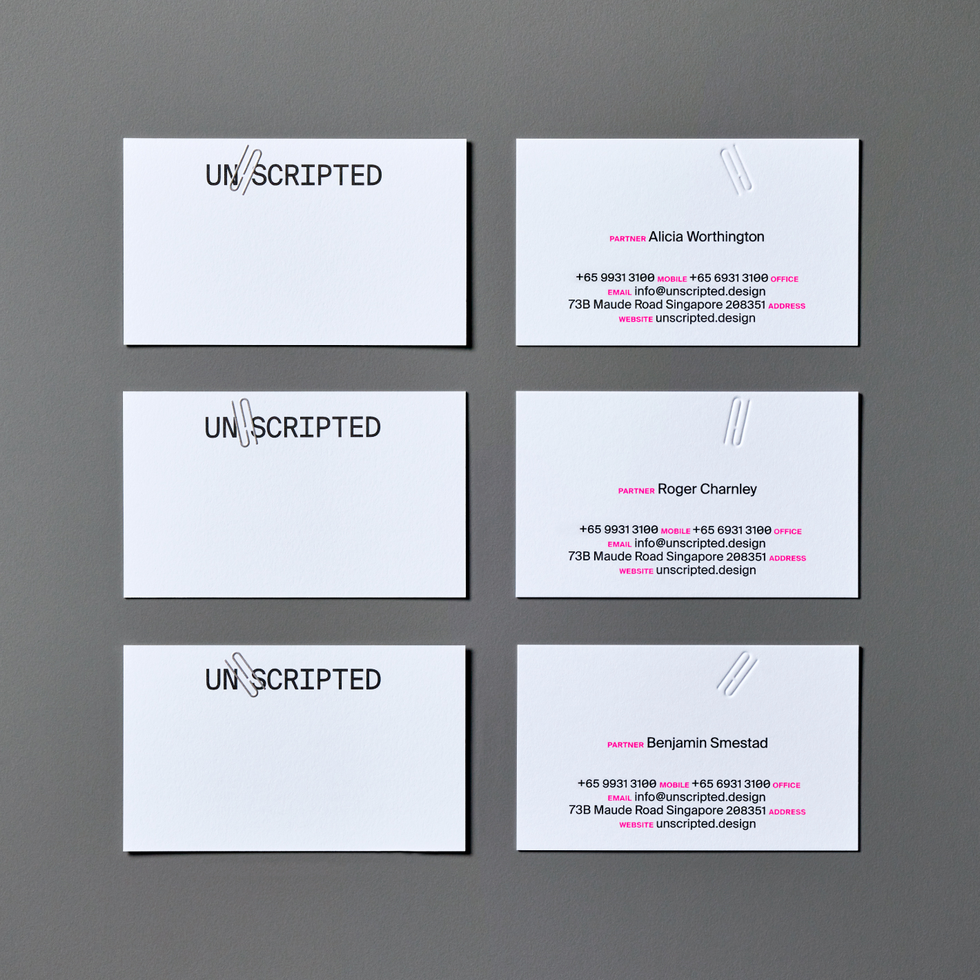 We created a symbol inspired by the letters ‘U’, ‘N’ and ‘S’ – rendered as a clip that holds together the rest of the wordmark. This symbol can be personalized by rotating it at fixed intervals of six degrees, an allegory to ‘six degrees of separation’ – the way everyone and everything in our world is somehow connected by way of intermediate acquaintances and random relationships. The use of a striking magenta hue as an accent was inspired by its association on CAD renders and the sheer unthinkability of it being used by a ‘serious profession’. Initially rejected for that exact reason, it was soon embraced wholeheartedly in the spirit of the company’s genesis.