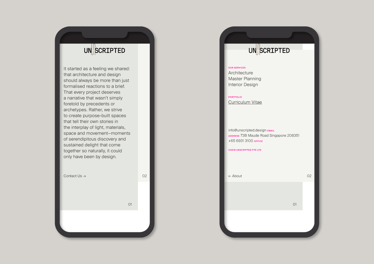 We created a symbol inspired by the letters ‘U’, ‘N’ and ‘S’ – rendered as a clip that holds together the rest of the wordmark. This symbol can be personalized by rotating it at fixed intervals of six degrees, an allegory to ‘six degrees of separation’ – the way everyone and everything in our world is somehow connected by way of intermediate acquaintances and random relationships. The use of a striking magenta hue as an accent was inspired by its association on CAD renders and the sheer unthinkability of it being used by a ‘serious profession’. Initially rejected for that exact reason, it was soon embraced wholeheartedly in the spirit of the company’s genesis.