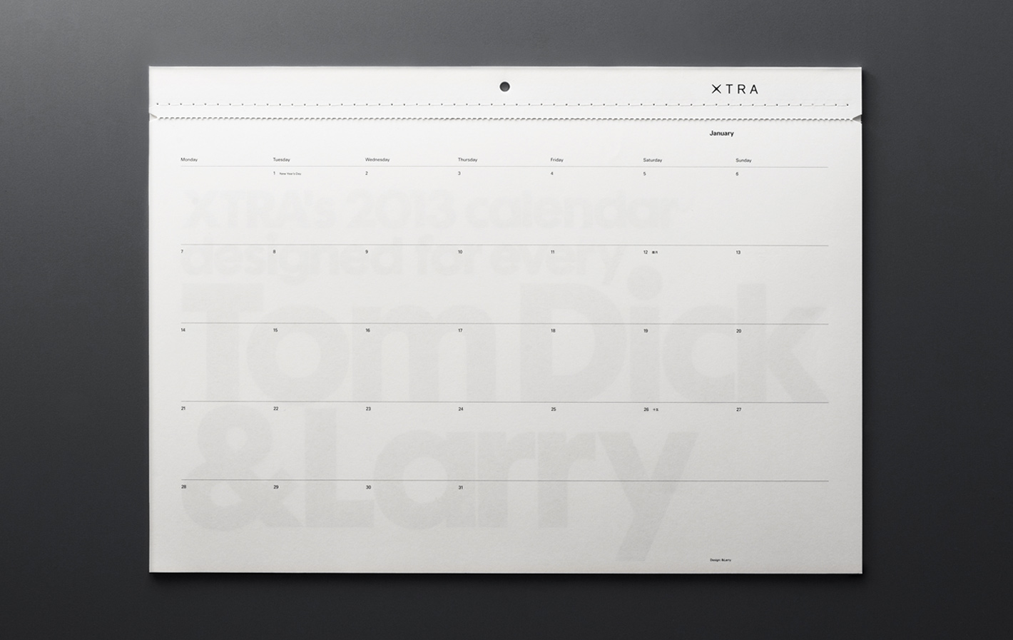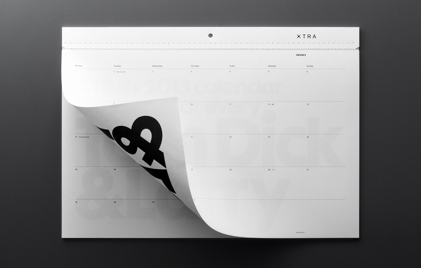 GET IN TOUCHWe were commissioned by XTRA to inaugurate their designer calendar series. The concept is simple: we wanted a calendar that is well-designed and very useful. This was in response to typical designer calendars which often sacrifice function for form.