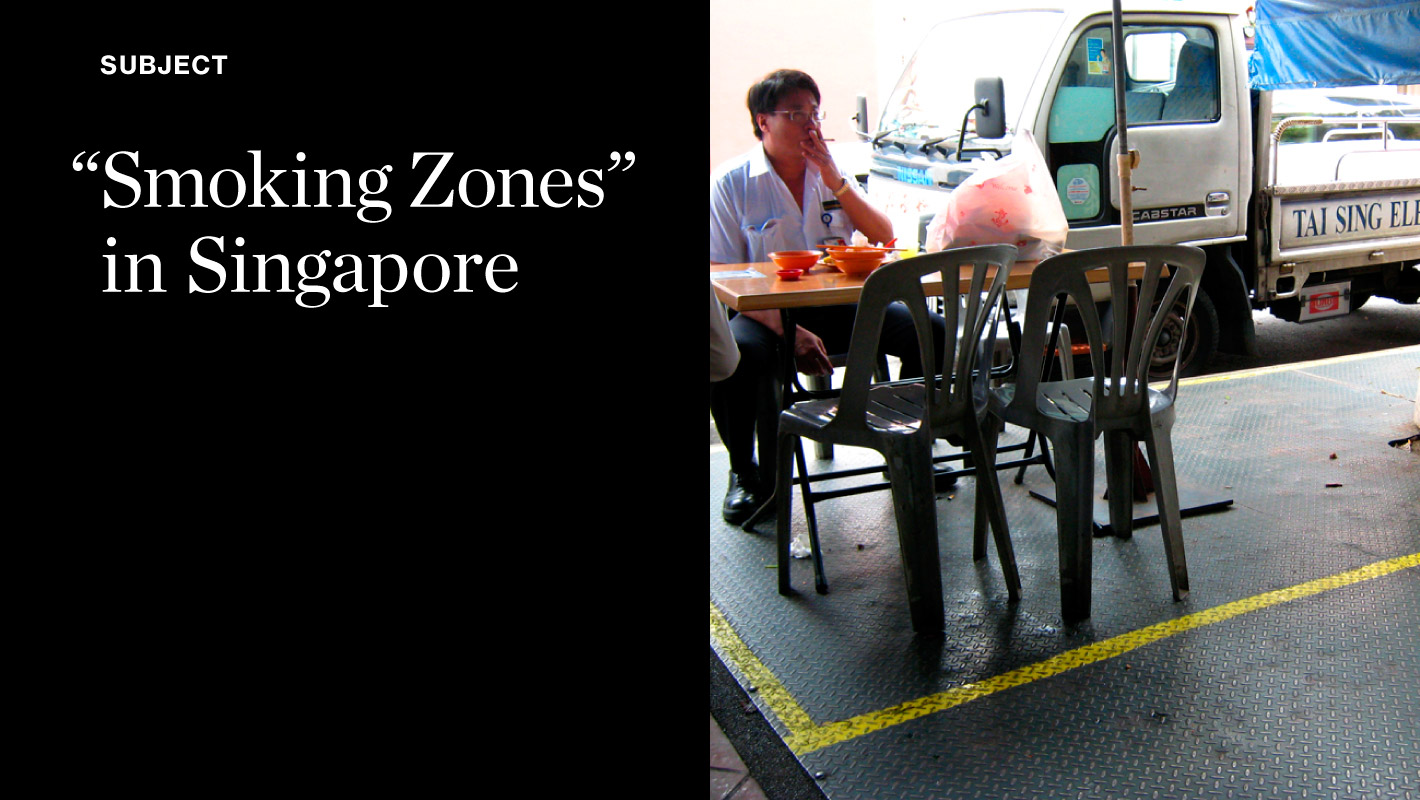 GET IN TOUCHCan our social and interpersonal boundaries be neatly demarcated by law? For smokers in Singapore at least, it certainly seems so. In public areas like coffeeshops, approved “smoking zones” are clearly defined by bright yellow lines.